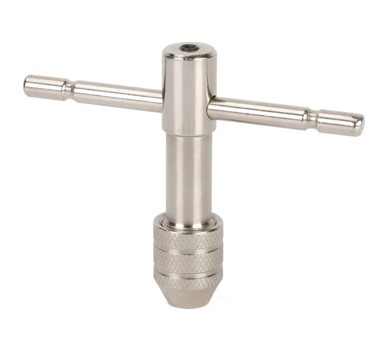 This tap wrench is designed for use with taps reamers, screw extractors and other tools with a square shank. Adjusted and tightened to size by twisting knurled nut.