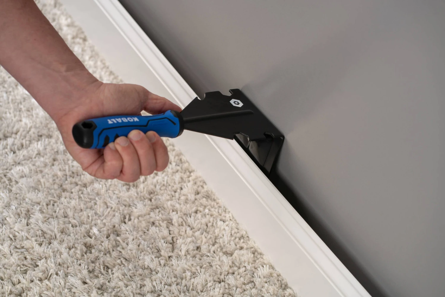 Twisting action works best, use a hammer to drive the Trim Puller downward between the trim and wall.