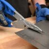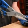 This 13-in aluminum snips design with 3-in wide curves blade is excellent for tin, copper, aluminum, vinyl, 22 gauge cold rolled steel . Large handle loops increase cutting leverage and comfortably fits all hand sizes, including gloved hands. Strong, durable, and lightweight aluminum construction.