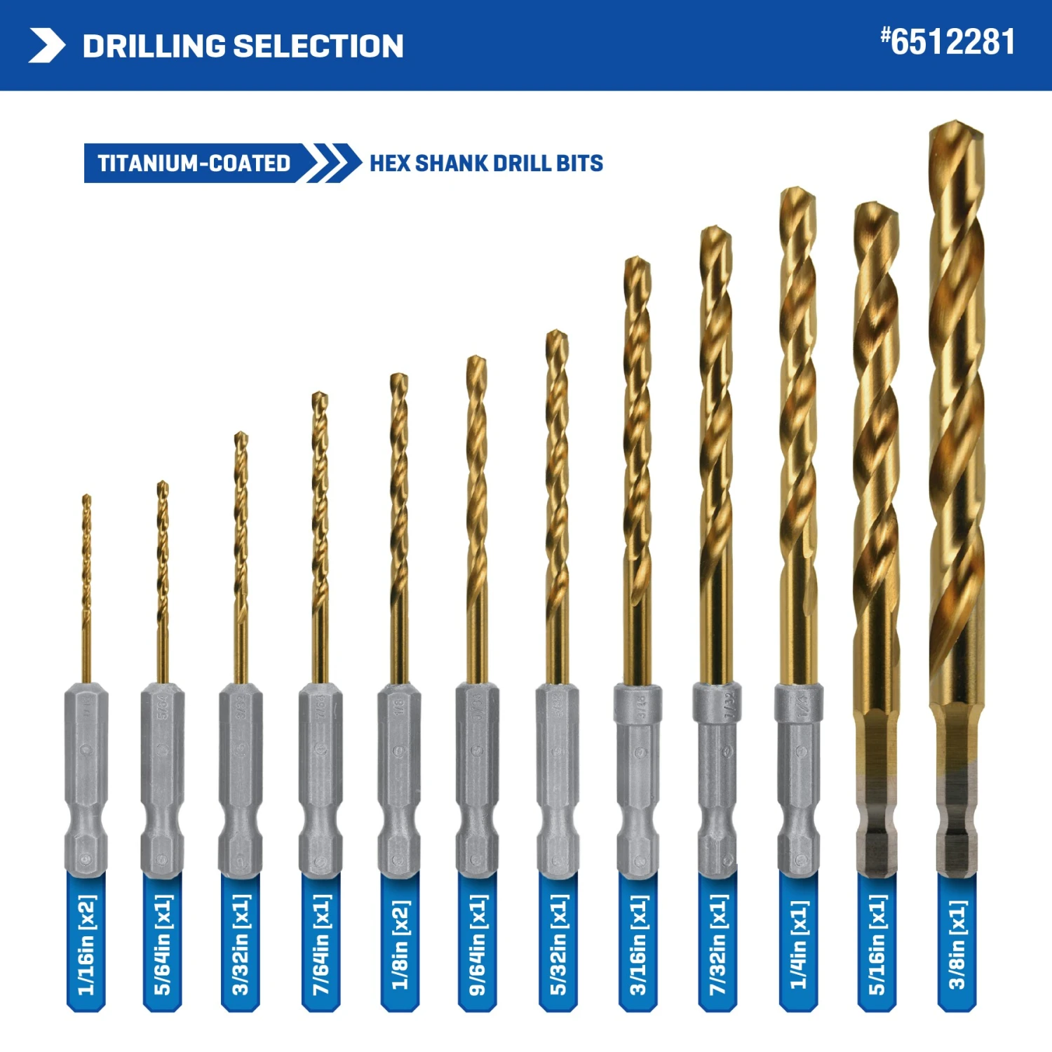 A large selection of Titanium coated hex shank drill bits ideal for versatile drilling applications in wood, metal and plastic.