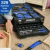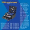 Also Included: 8in Heavy-duty Scissors, 16pc Hex Key Set (SAE and Metric), 3/8in Drive 90-tooth Ratchet, 1/4in Drive 90-tooth Ratchet, 40 Sockets, 2 Extensions, 3 Adapters, 4pc Screwdrivers, 10-in-1 Precision Screwdriver