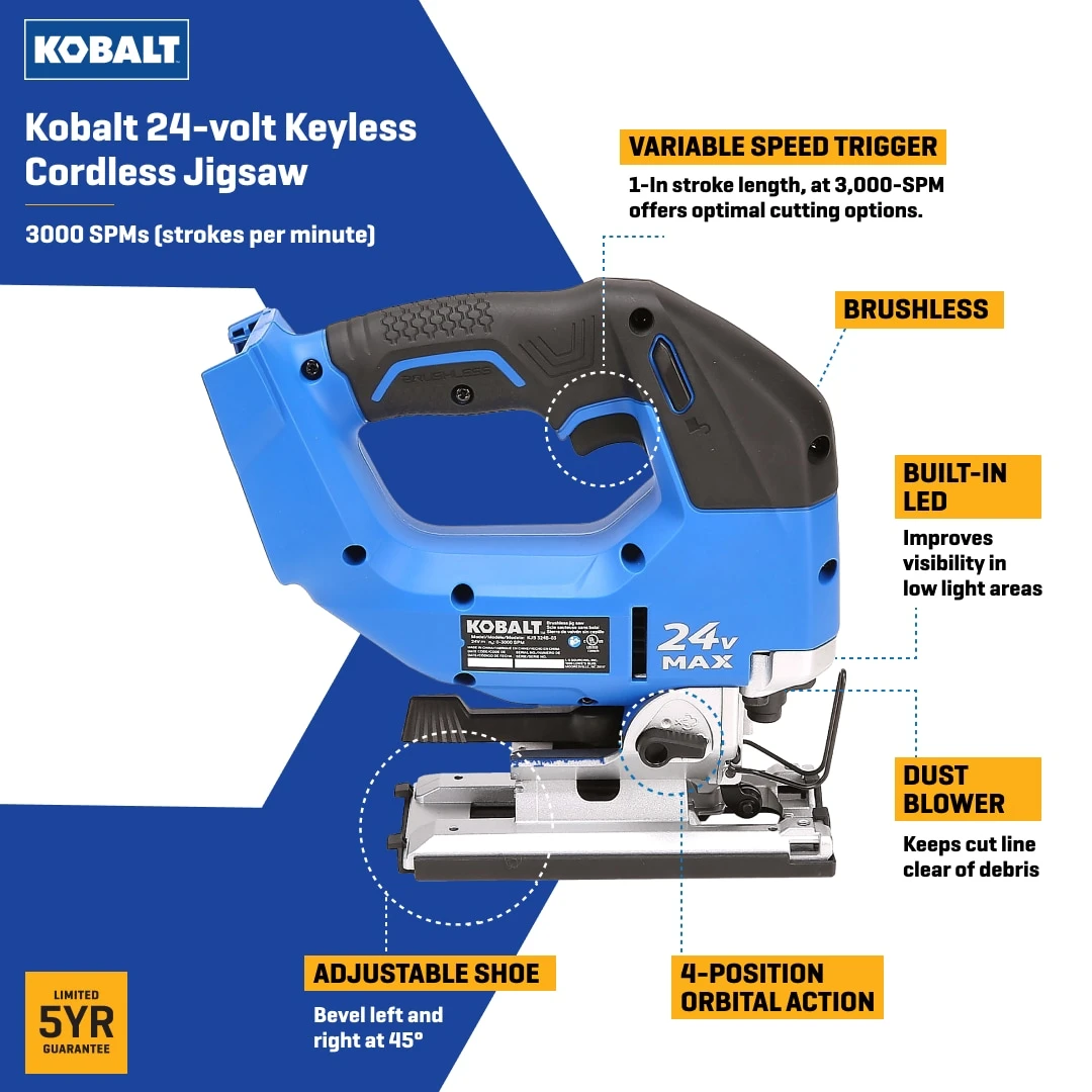 Kobalt 24-volt Brushless Variable Speed Keyless Cordless Jigsaw (Battery Not Included And Charger Not Included)