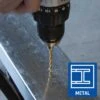 135-degree split point penetrates on contact to reduce drill bit walking (1/8-in and larger diameters); 118-degree point 1/16-in to 7/64-in in diameter bits