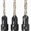 Self-centering pin prevents walking. Designed for use with hand held drill drivers. Precision cutting blades for accurate, tapered wood plugs. Set includes 3 sizes: 5/16 inch, 3/8 inch, and 1/2 inch.