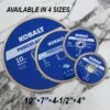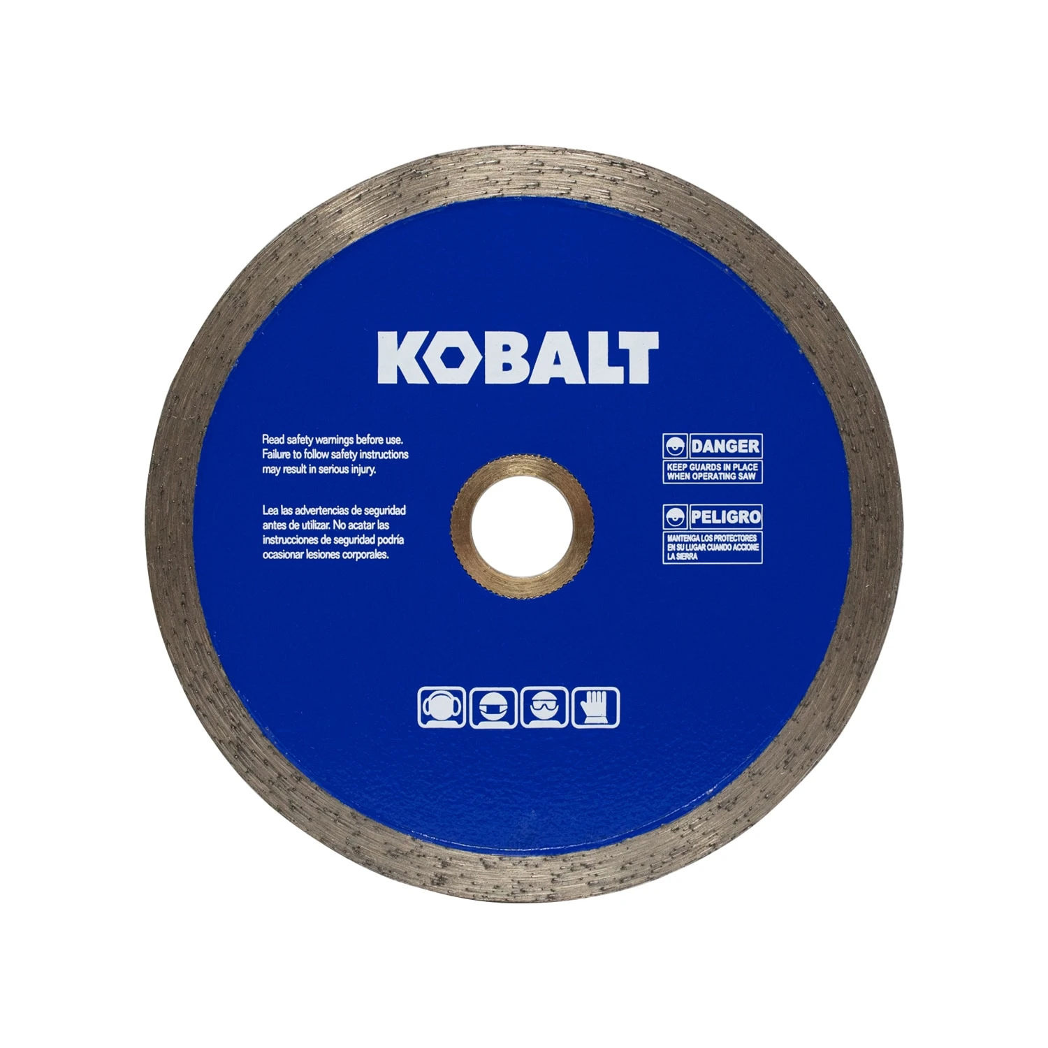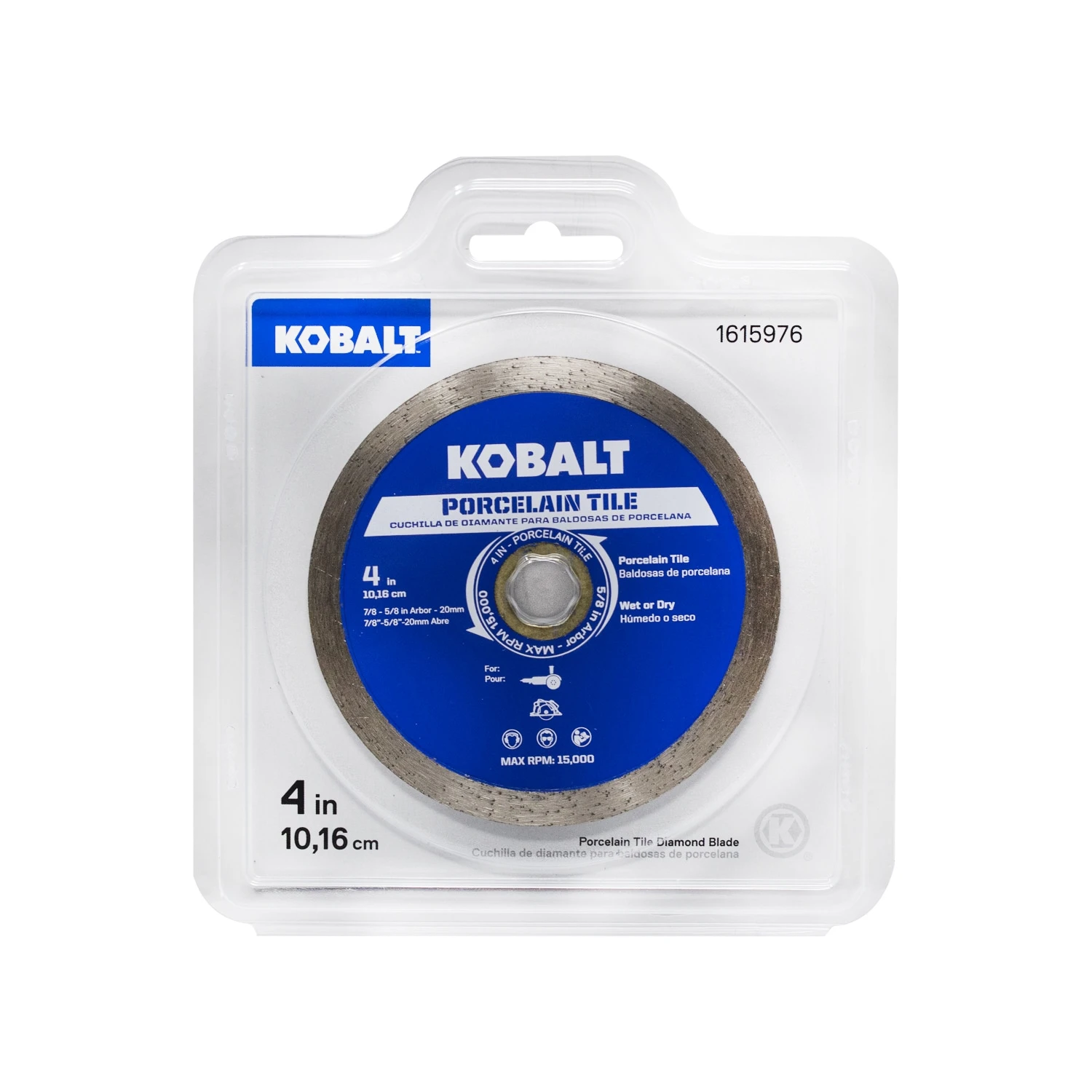The Kobalt 4-in continuous rim diamond saw blade can be used both wet and dry. This blade is designed for fast cutting with 4 times longer life span than standard abrasives blades. This safe, wobble free blade produces accurate and smooth cuts. Ideal for cutting porcelain, ceramic, marble and granite tile.