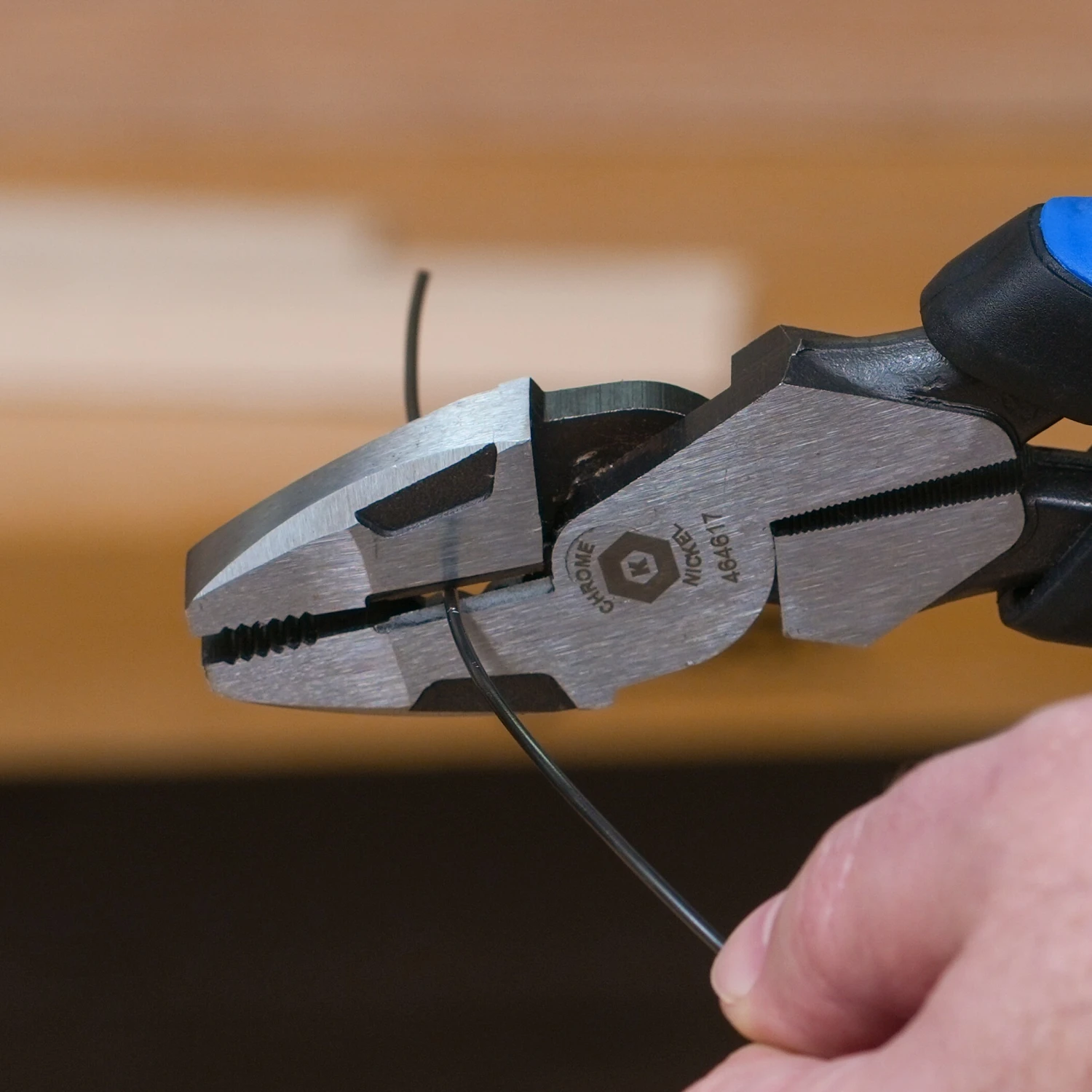 These 9in linesman pliers offer a flat-nose design, for twisting and grabbing wires. The drop-forged chrome nickel steel and hardened jaws give the user clean cuts and a powerful cutting edge.