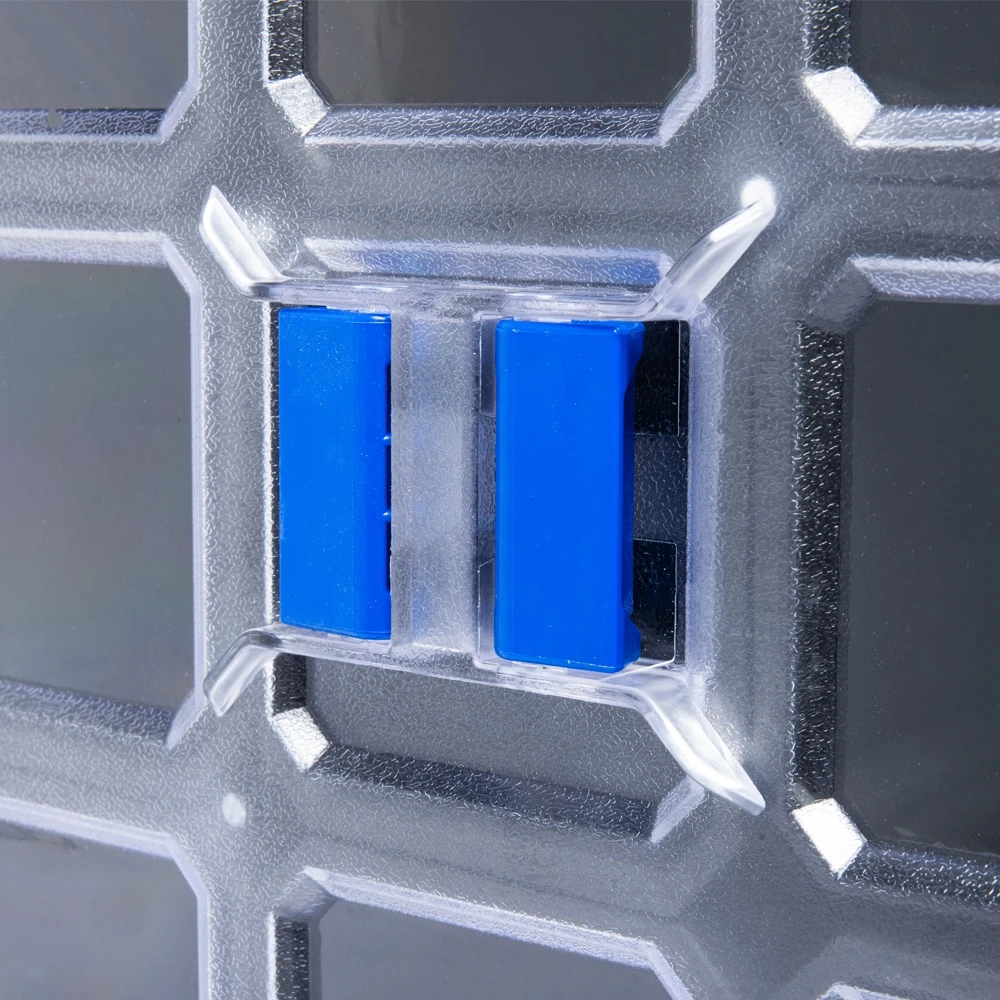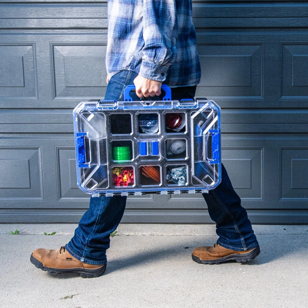 The KOBALT CASESTACK Organizer Modular Storage Box provides a solution for organizing small parts and hardware. This organizer is a must have product for working at a job site, DIY hobby enthusiests, and home storage. 15 individual bins with clear lids allow easy site to contents. The heavy-duty, impact-resistant plastic, IP65 all-weather resistance, and durable latches protects the contents from the environment. The organizer quickly connects to other KOBALT CASESTACK products for complete customizable modular storage.