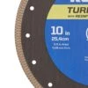 Kobalt’s latest innovation in tile cutting blades. This new 10” Kobalt turbo mesh blade is designed to provide the cleanest, smoothest cut ever. The with mesh diamond segments delivers high-quality cuts with minimal chipping. The turbo mesh pattern eliminates heat caused by friction resulting in the perfect cut. It has a reinforced steel core that prevents flexing, wobbling, and vibration during cutting for steady operation. Perfect for contractors and DIY for premium cuts on porcelain, granite, marble , and other natural stone. For use on 10” wet tile saws.