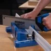 Kobalt miter box and back saw set is suitable for swaying the saw and ensuring the cutting accurately, the miter box is made of high strength ABS engineering plastics, durable to use. Just place the wood inside the miter box and align according to desired measurement and cut angle. An excellent aid for cutting perfect angles, mitered corners and splices.