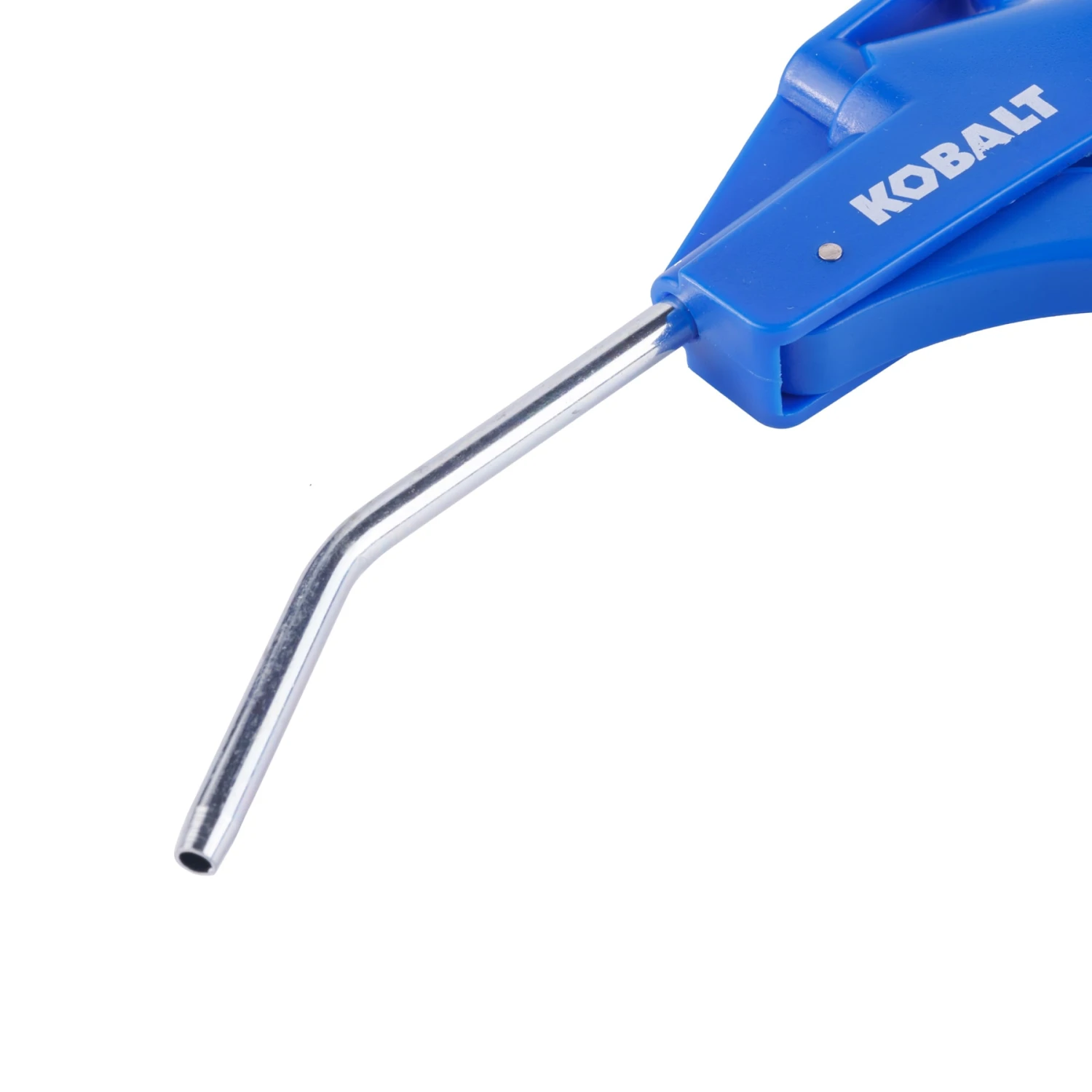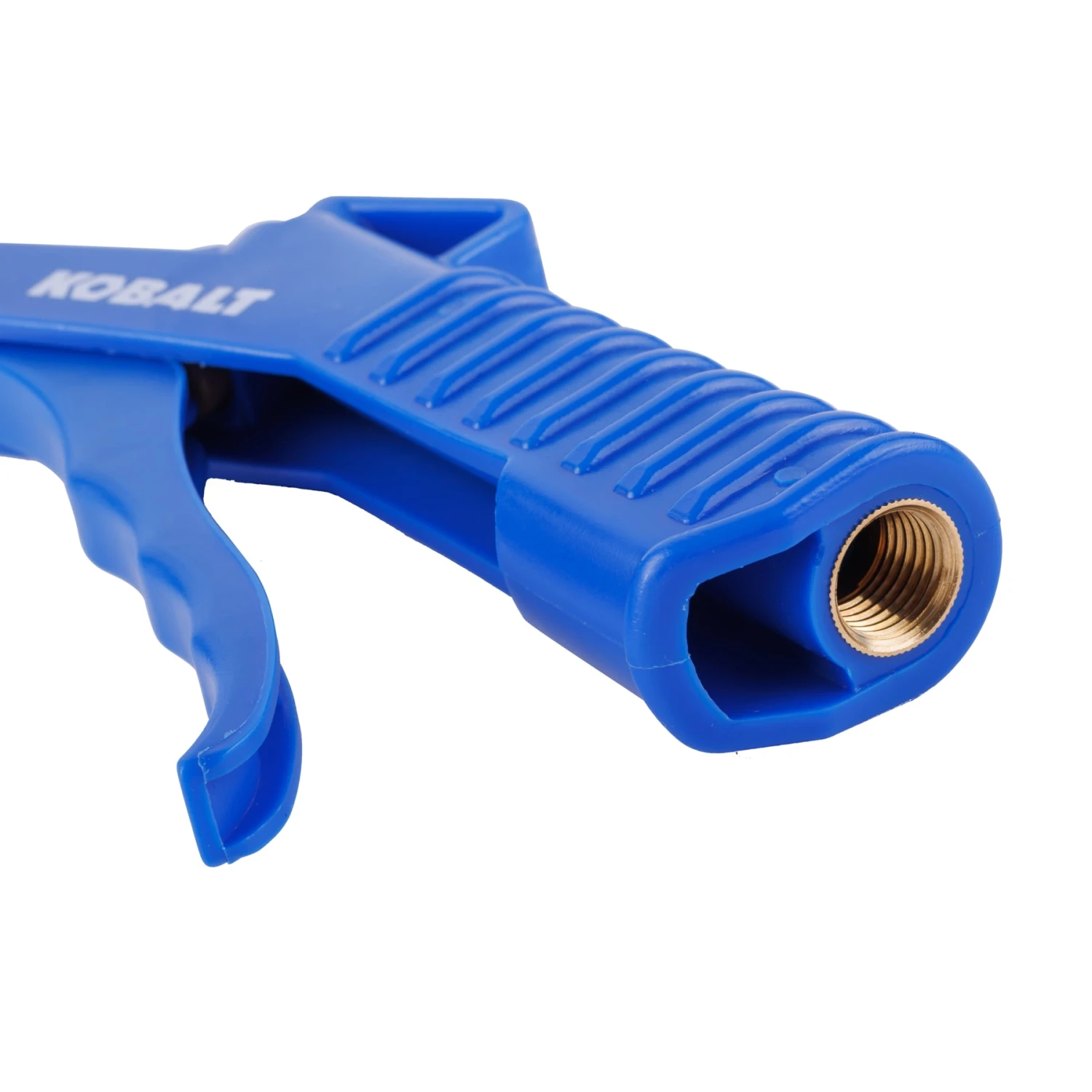 The Kobalt Pistol Grip Blow Gun has a brass 1/4-in NPT brass inlet for long-lasting durability and performance. With a comfortable pistol grip design, it’s easy to use for extended periods of time without causing discomfort or fatigue – perfect for blowing dust and debris off your workbench or cleaning up your garage!