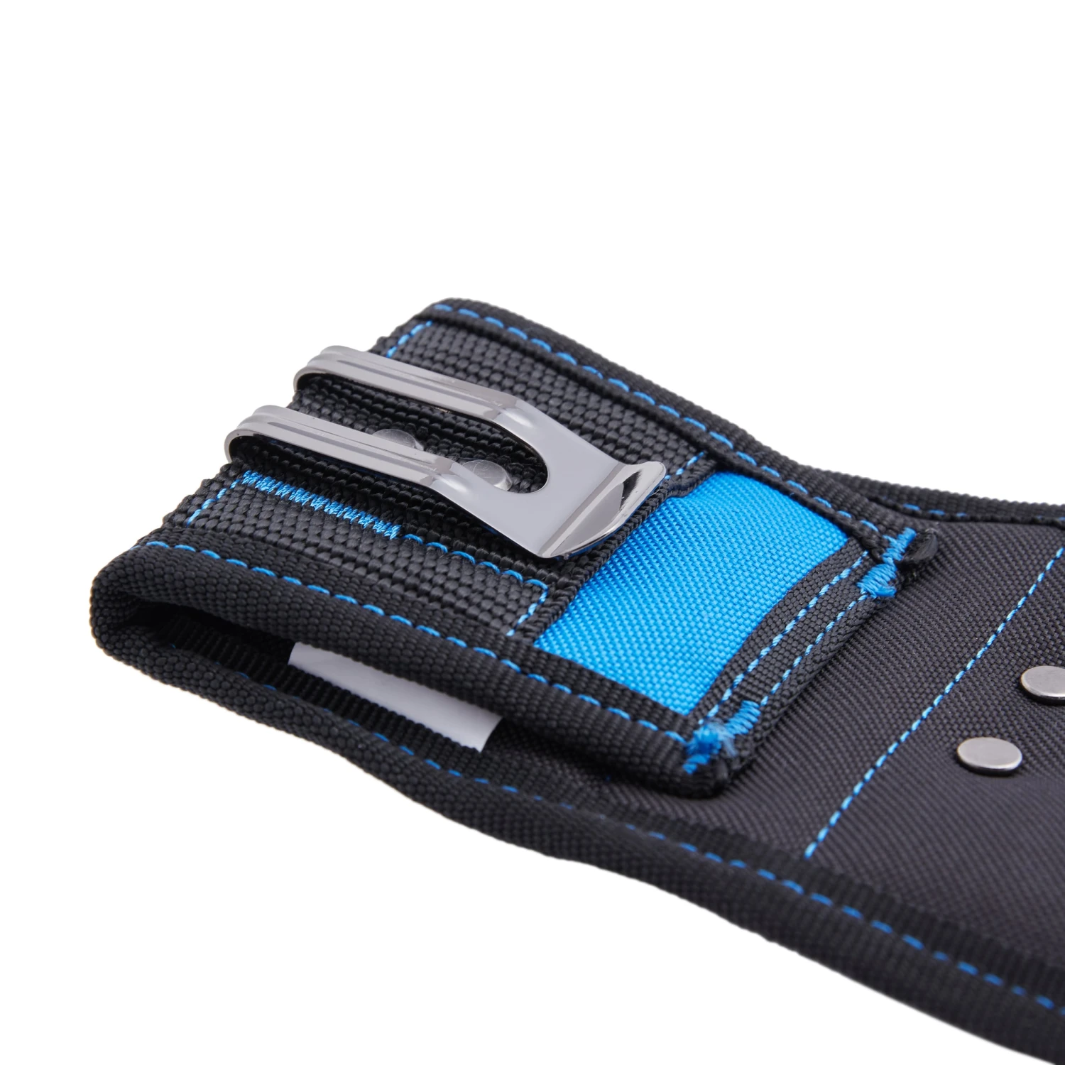Our uniquely hinged, ball-capped hook conveniently holds most cordless drills and features 2 bit pockets and an elastic sleeve to help you organize your bits and accessories.
